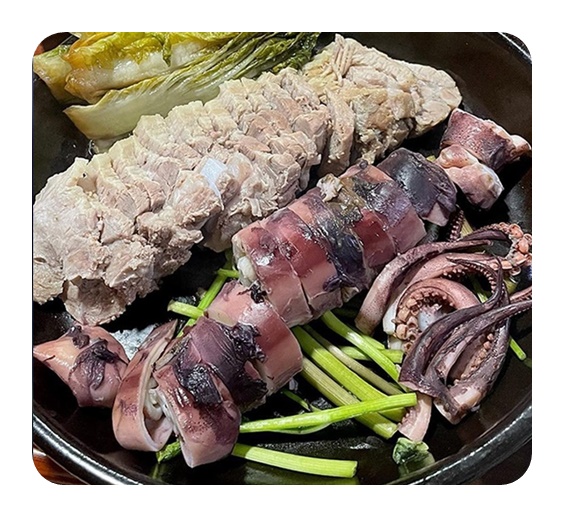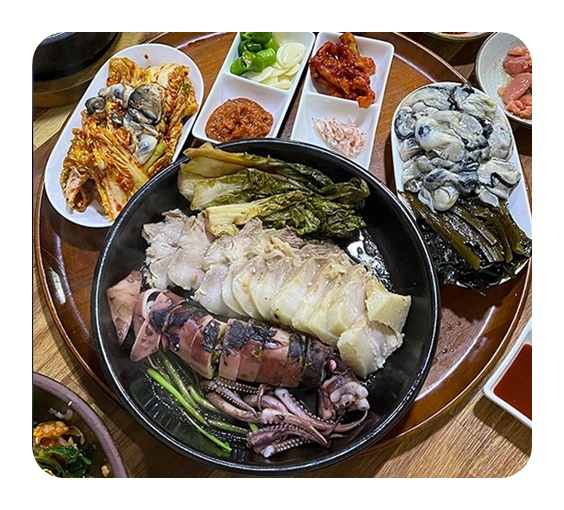 메뉴 : 계절메뉴 50,000원 장어두루치기 35,000원 생선구이 30,000원 새조개샤브샤브 변동 청게 변동 갑오징어숙회 35,000원 미더덕회 30,000원 라갈비 30,000원 가오리찜 35,000원
