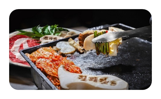 메뉴 : 한우차돌삼합 28,000원 한우파김치전골 55,000원 (점심)묵밥밥상 10,000원 (점심)한돈파김치전골밥상 10,000원 (점심)새조개장비빔밥 10,000원 (점심)한우꽃게된장찌개밥상 10,000원 (점심)한우차돌짬뽕밥상 10,000원