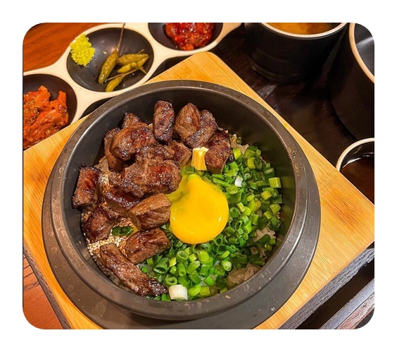 메뉴 : 도미관자솥밥 15,000원 연어솥밥 14,000원 스테이크솥밥 14,000원 항정살솥밥 13,000원 새우장솥밥 13,000원 꼬막솥밥 11,000원