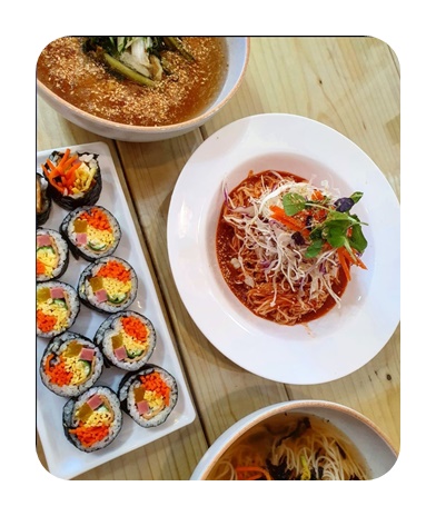 메뉴 : 잔치국수 6,000원 비빔국수 6,500원 멸치김밥 4,000원 진미채김밥 4,500원 그냥김밥 3,500원