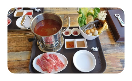 메뉴 : 마라탕 1인세트 10,000원 건강만점 토마토 1인 훠궈 세트 중독만점 충칭 마라 1인 훠궈 세트 12,000원 영양만점 사골육수 1인 훠궈 세트 12,000원 갬성만점 옥수수국수 8,000원