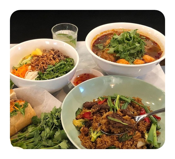 메뉴 : 소고기 쌀국수 11,000원 촙촙면 12,000원 마라 쌀국수 13,000원 씨푸드 갈릭 볶음면 13,000원 소고기 후추 볶음밥 13,000원 반미 9,000원 짜조 8,000원 버팔로 윙 11,000원 고수, 양상추와 함께 싸먹는 치킨 13,000원 분보싸오 12,000원 소고기 굴소스 야채볶음 25,000원 매실소스치킨탕수육 19,000원