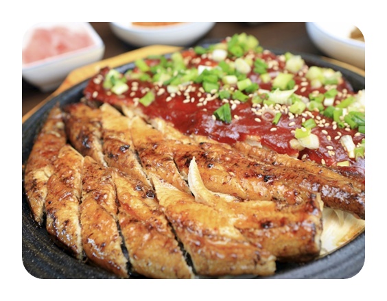 메뉴 : 민물장어구이(한방간장소스) 32,000원 민물장어구이(고추장양념소스) 32,000원 소금구이 32,000원 바다장어연탄구이 26,000원 장어탕 7,000원 물냉면 10,000원 비빔냉면 10,000원