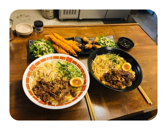 메뉴 : 돈코츠라멘 8,500원 차슈동 9,000원 야끼소바 8,500원 냉라멘 8,500원 돈코츠미소라멘 8,500원 나가사끼라멘 9,000원 탄탄멘 9,000원 규라멘 9,000원 카라규라멘 9,000원 마제소바 8,500원