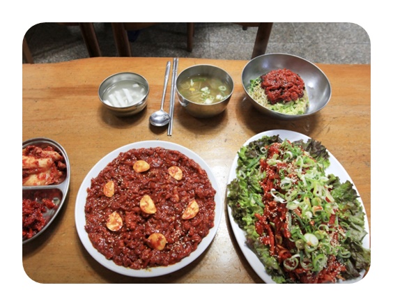 네 번 째로 소개해 드릴 진주 맛집은 '제일식당' 입니다. 육회비빔밥과 가오리무침을 주력으로, 가성비도 나쁘지 않아서 현지인들이 많이 찾는 곳 입니다.