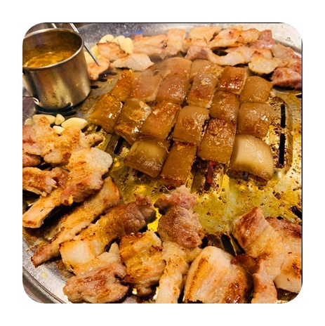 메뉴 : 갈비살 100g 25,000원 차돌박이 100g 14,000원 돼지불고기 200g 9,000원 돼지삼겹살 150g 10,000원 된장찌개 5,000원