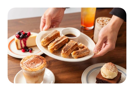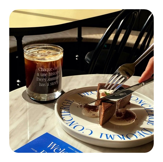 메뉴 : 약과치즈케이크 7,500원 딸기 티라미수 9,000원 로얄 바닐라라떼 6,500원 참외 그라니타 7,500원 무화과 피스타치오 다쿠아즈 7,500원 배와 쌀 그라니타 7,500원 초당 옥수수 치즈케이크 7,800원 화이트피치 티라미수 9,500원 그라니타 7,000원