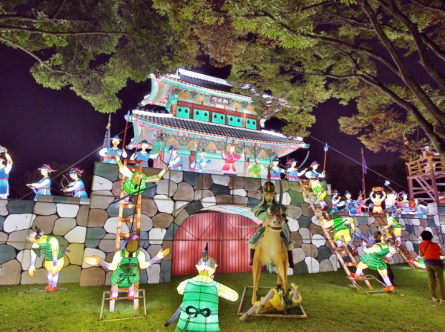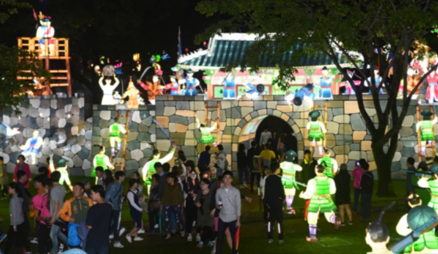 진주 남강에 등을 띄우는 유등 행사는 임진왜란 3대첩의 하나인 진주대첩에 기원을 두고 있습니다. 임진년(1592) 10월, 진주목사 김시민 장군을 비롯한 3,800여명의 수성군과 진주성을 침공한 2만 여명의 왜군이 벌인 제1차 진주성 전투는 6일간 이어졌는데요. 치열한 공방이 오가는 가운데 진주성 수성군이 칠흑같이 어두운 밤에 남강에 유등을 띄워, 남강을 건너려는 왜군을 저지하는 군사전술로, 한편으로는 성 밖의 가족들에게 안부를 전하는 통신수단으로 사용했었다고 합니다.
